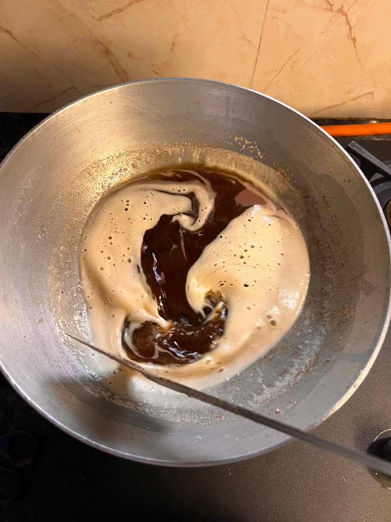 Then begins the part of cooking I love the most. The ghee goes in—a generous spoonful, because my cooking rarely has the heart to be stingy. Shukno lonka, tej pata, whole garam masala. The moment they hit the heat, the fragrance unfurls into the room. I prefer using my homemade ghee. Have not really enjoyed store bought ones ever since I started making my own.